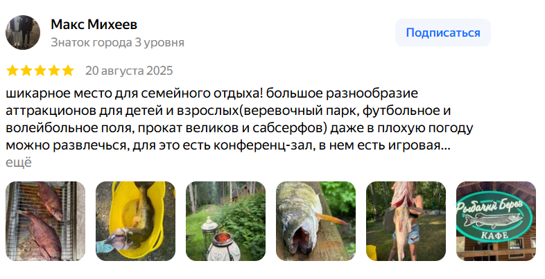 все активности на природе, в лесу и у озера;